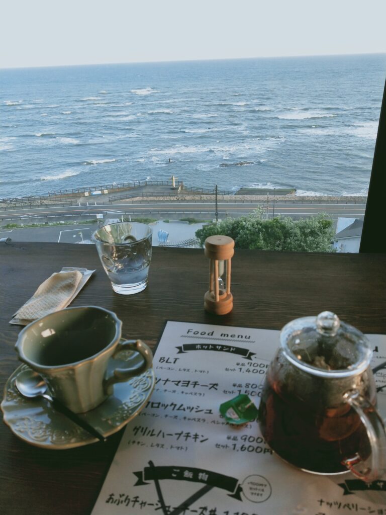 灯台のすぐ横におしゃれなカフェがあったので入る。ここは昔は和風の食堂だったとのことで一昨年店主のお母さまが引退なさるのをきっかけに洋風のカフェに仕立て直したとのこと。