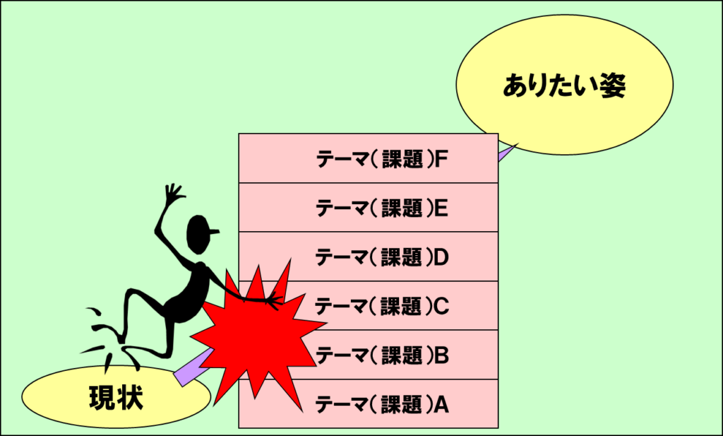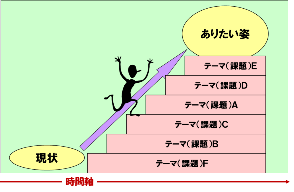 これにはテーマ(課題)を自然に昇れる 階段 に整理することが重要です。